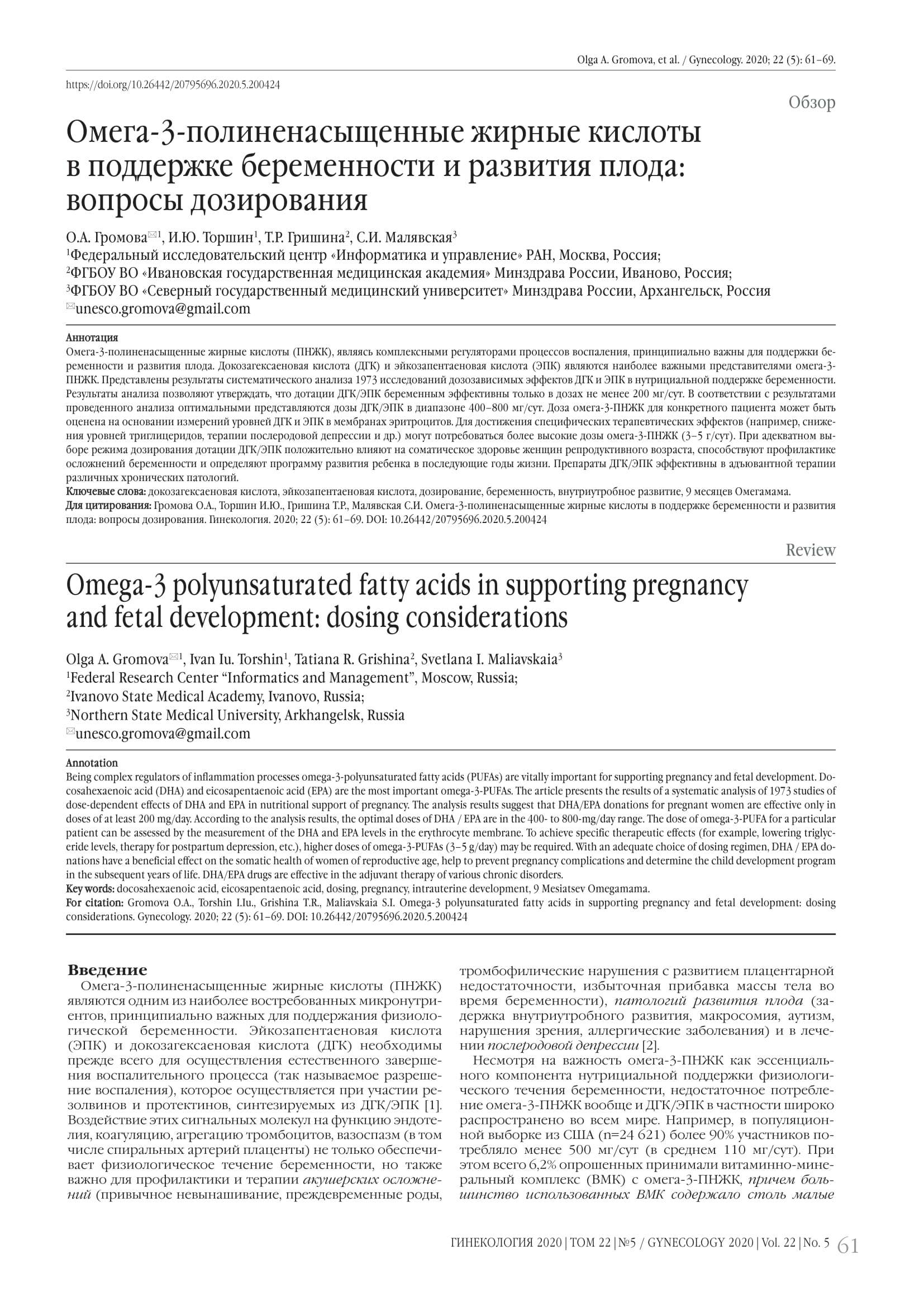 Омега-3-полиненасыщенные жирные кислоты в поддержке беременности и развития плода: вопросы дозирования